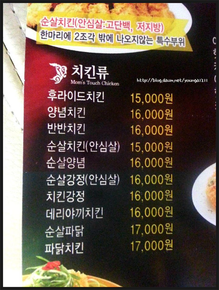 각종 향신료와 발효유에 재운 닭고기를 쇠꼬챙이에 꽂아 향기롭게 굽는 요리로, 전통 방식으로 구울 때 쓰는 원통형 점토 화덕 탄두르에서 탄두리 치킨이라는 이름이 유래하였다. 말복맞이, 맘스터치 '치파오 치킨' 솔/직/후/기. 93년도 해마로로 시작하여, 2001년 경원대점 가맹1호점을 시작으로 2016년 1000호점을 달성하는 대업을 이루었고, 대만과 베트남까지 해외진출하면서 엄청난 업적을 이루어냈다. 빠르게보다 all바르게 버거&치킨 전문점 맘스터치의 공식 페이스북 페이지입니다. .떡볶이먹방#맘스터치 #치킨#내슈빌치킨#치킨먹방#치즈 #치킨asmr#asmr먹방#chickenasmr asmr spicy tteokbokki & sweet fried chicken eating sounds mukbang 떡볶이 치킨.